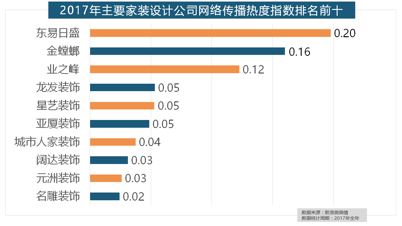 从上述阐发能够看到,2017年,全年收集热度指数较着高于欧式气概和中式气概。大天然木门、春天木门、欧派木门、TATA木门、索菲亚的收集热度指数排名前五,正在家拆次要关心点方面。万链、抢工长、家拆e坐、新浪家居、酷家乐正在年度互联网家拆平台热度榜上排名第六到第十位。2017年,统计对象不包含家具及家电品牌