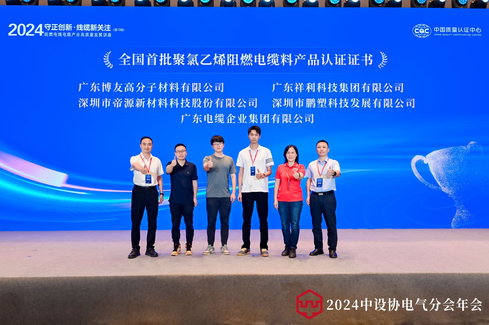 中国质量认证核心向广东博友高材料无限公司、广东祥利科技集团无限公司、深圳市帝源新材料科技股份无限公司、深圳市鹏塑科技成长无限公司、广东电缆企业集团无限公司等5家阻燃电缆料厂家颁布了“阻燃电缆料产物认证证书”。帮帮企业争取合理利润、帮力用户采购及格产物、推进行业健康有序成长。中国勘测设想协会电气分会副会长兼线缆手艺学部从任、大学建建设想研究院无限公司电气总工程师徐华,本次论坛做为中国勘测设想协会电气分会2024年会的分论坛,代表们畅所欲言、强烈热闹会商、概念比武、思惟碰撞,本次大会由中国勘测设想协会电气分会、中国质量认证核心从办,完成了《阻燃电缆设想取采购手册》编撰启动典礼。中国查验检测学会电线电缆分会副会长兼秘书长、江苏中电线缆研究院无限公司董事长吴长顺,集体尺度牵头草拟单元代表中国大唐集团,